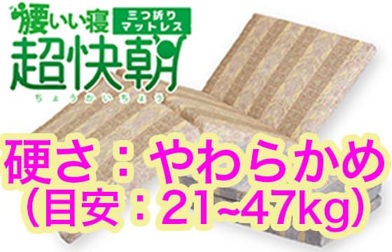 「腰いい寝」「快眠の王」と基本構造は同じですが、厚さが6.5cmで三つ折りタイプになります。フローリングでも底つき感・底冷えなく快適に眠りたい方におすすめです。