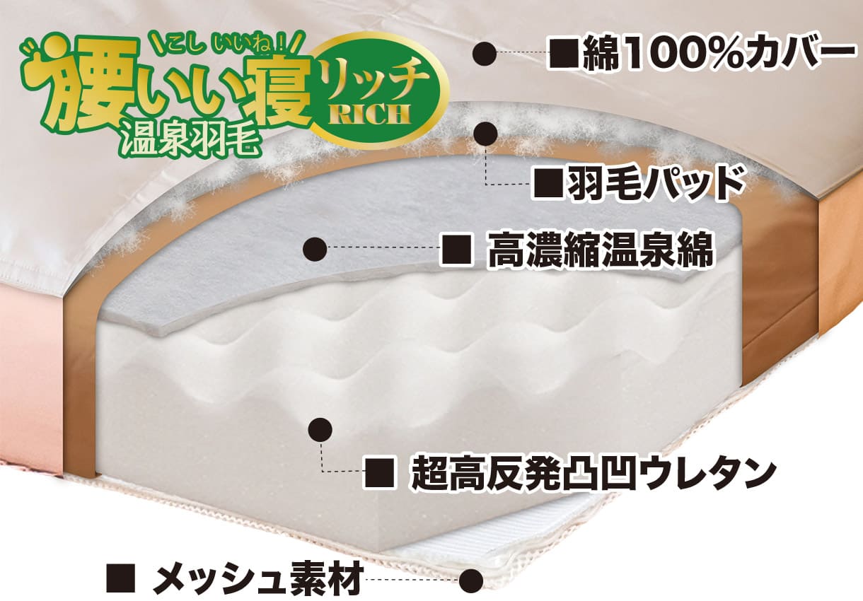 羽毛マットレス「腰いい寝リッチ温泉羽毛」