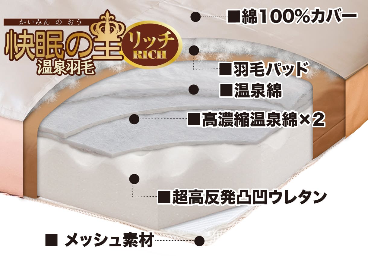 「快眠の王リッチ温泉羽毛