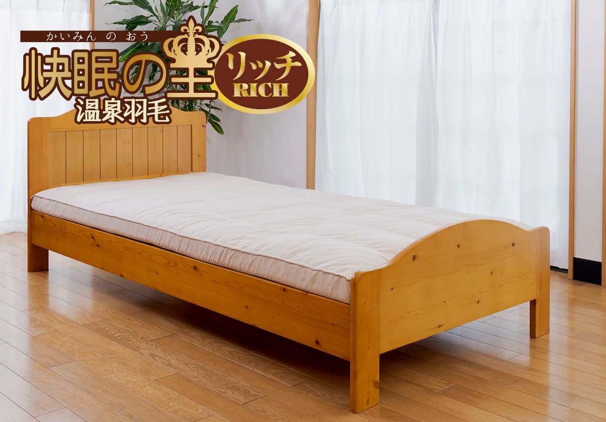 快眠の王リッチ温泉羽毛シングル¥139,800〜(税込)
