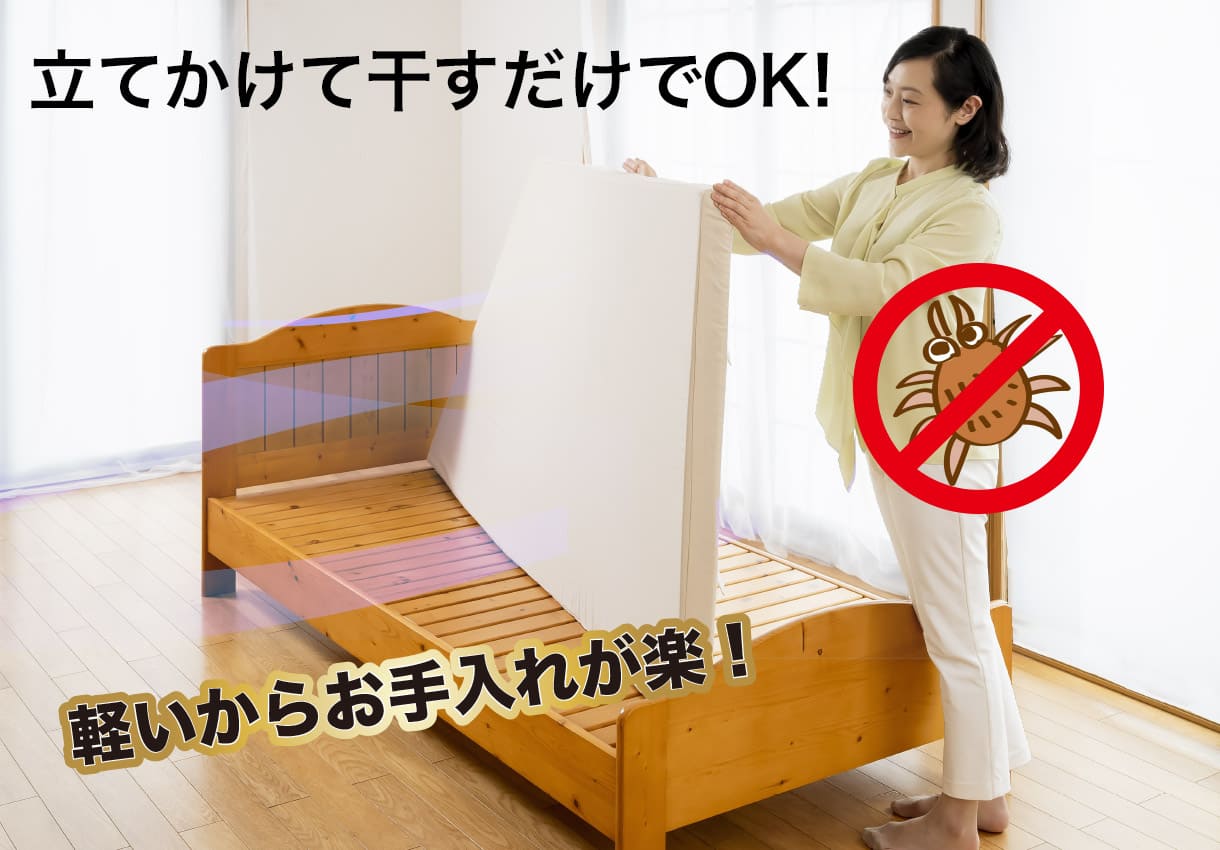 干し方は簡単!室内で5~10分立てかけるだけでマットレス内の湿気を取り除くことができます。