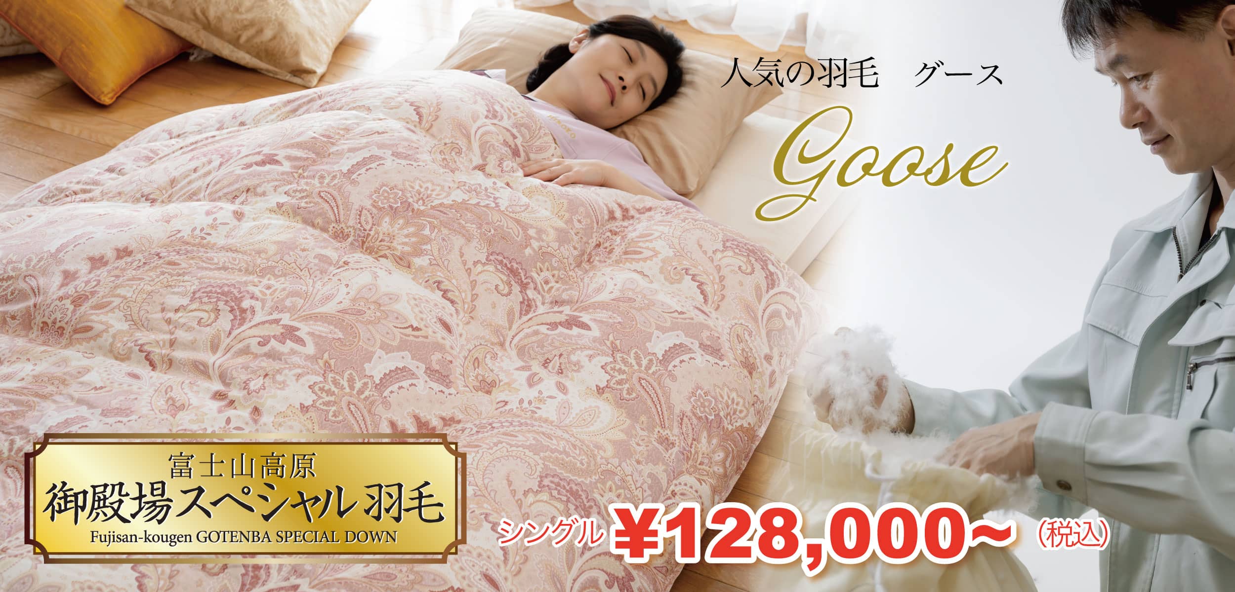 「御殿場スペシャル羽毛」のグースはでは、ポーランドグースのハンドセレクト、マザーグースやハンガリー シルバーグースのラインナップでお届けします。